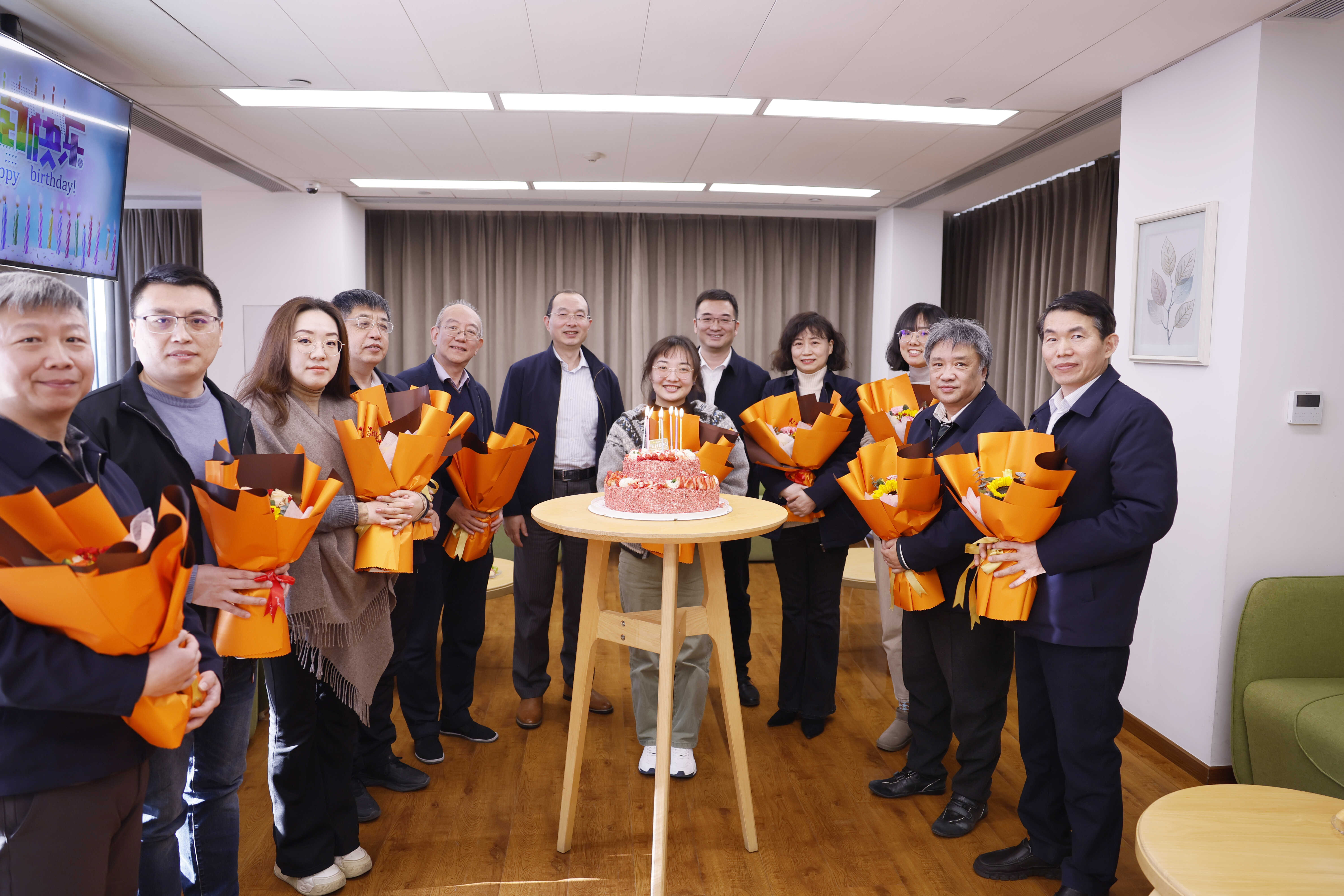 参加生日会的职工依次介绍了个人的工作和生活情况,对公司给予员工的关心关爱表示感谢,并表示通过参加公司2025年度总结暨表彰大会,为公司2025年取得的各项成就所振奋,同时进一步明确了2026年的工作目标,表示将继续立足岗位、奋发有为,为公司高质量发展贡献更多力量。随后,公司领导为“寿星”们送上鲜花和祝福,大家齐唱生日歌、许下心愿、吹蜡烛,分享生日蛋糕。